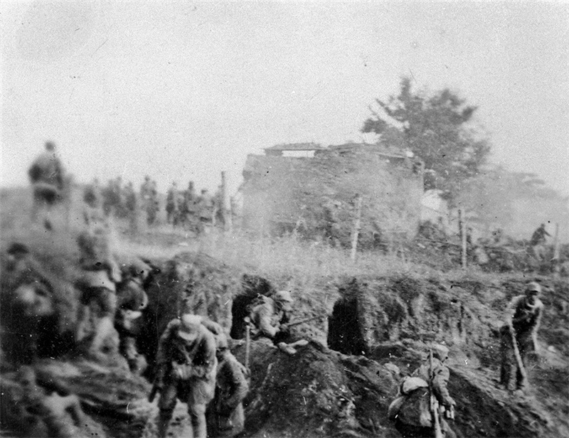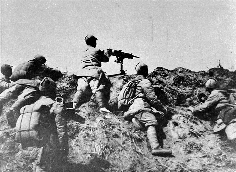 八路军战士强攻榆辽公路沿线的敌军据点。