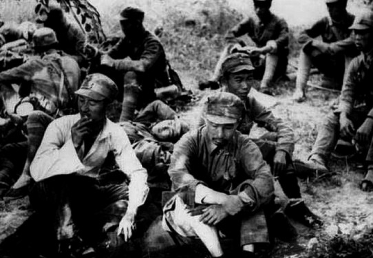 1941年,三八六旅旅长陈赓(前右)和参谋长周希汉(前左)在攻打榆社前小憩