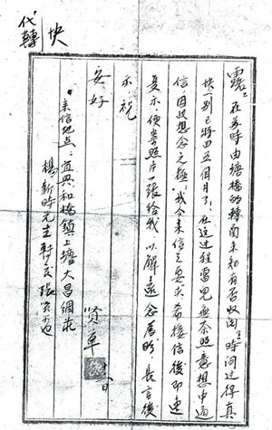在江苏省常熟市沙家浜革命历史纪念馆,收藏着一封70多年前的烈士家书(复制件)。这封情真意切的家书出自新四军白衣战士张贤之手,是写给他的妻子——同是白衣战士的庞露。信中,张贤表达了对妻子的想念之情,“我今来信之要求,希接信后即速复示,便寄照片一张给我,以解远念为盼”。