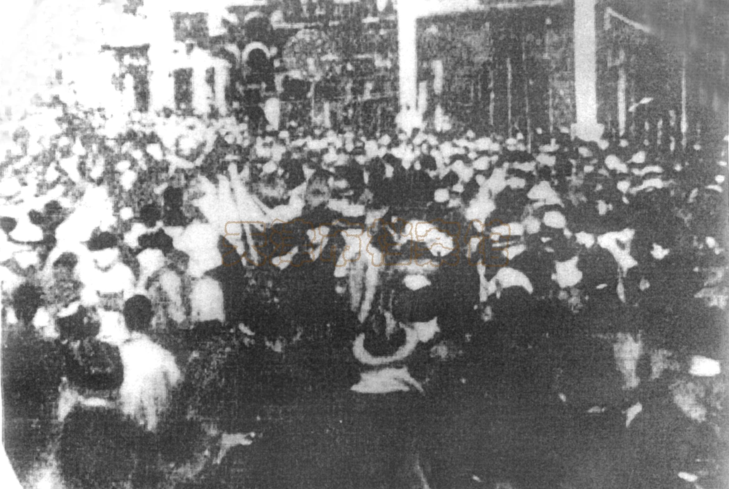 1936年5月,在中共中央北方局的领导下,天津学联以纪念“五卅惨案”、“反对日本增兵华北”、“反对华北特殊化”、“清查海河浮尸案”为主题举行反日示威大游行,抗议日本帝国主义增兵华北和屠杀我同胞,宣传党的抗日民族统一战线策略方针。图为南开大学学生在五二八大游行队伍中。