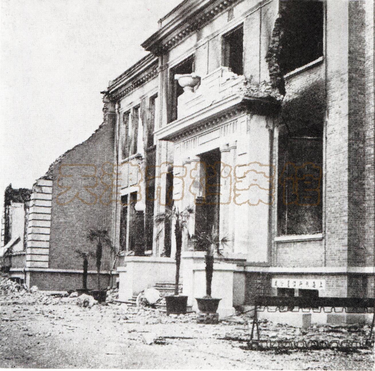 被日军飞机炸毁的南开大学木斋图书馆远景。