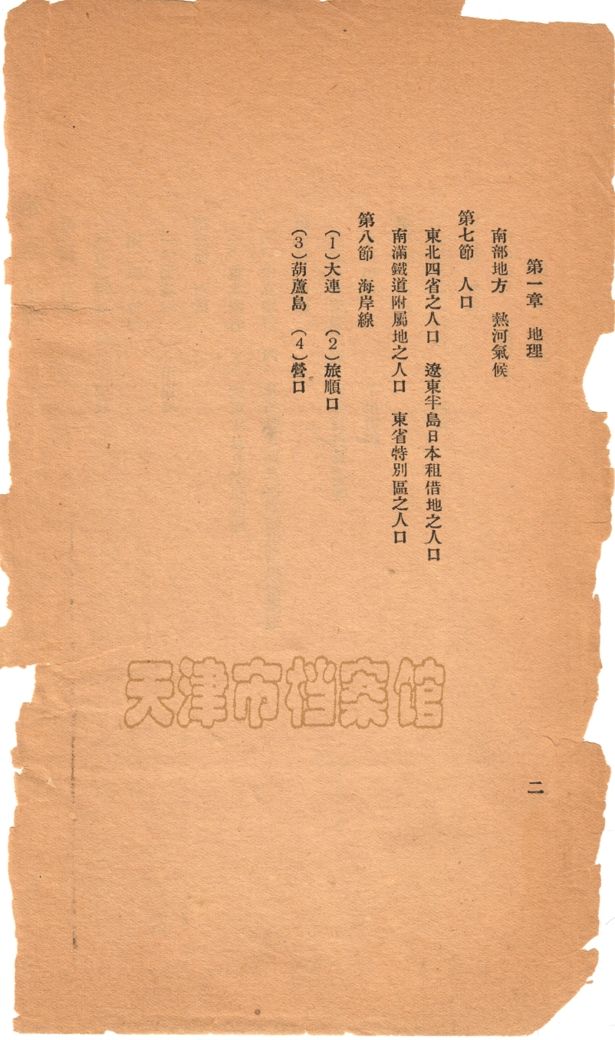 《东北地理教本》目录页(部分)。(图片来源:南开大学党委宣传部)