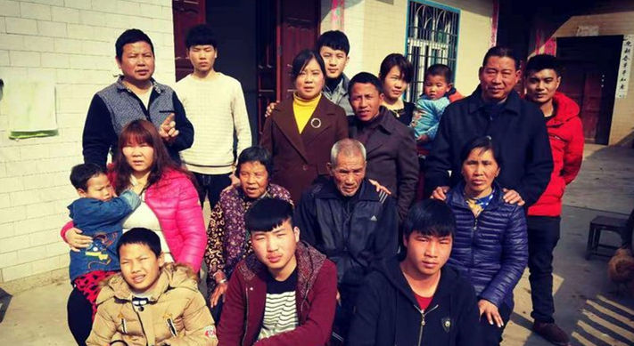 上世纪80年代初,袁也烈将军夫人罗加到洞口县同县领导与杨天越后人合影