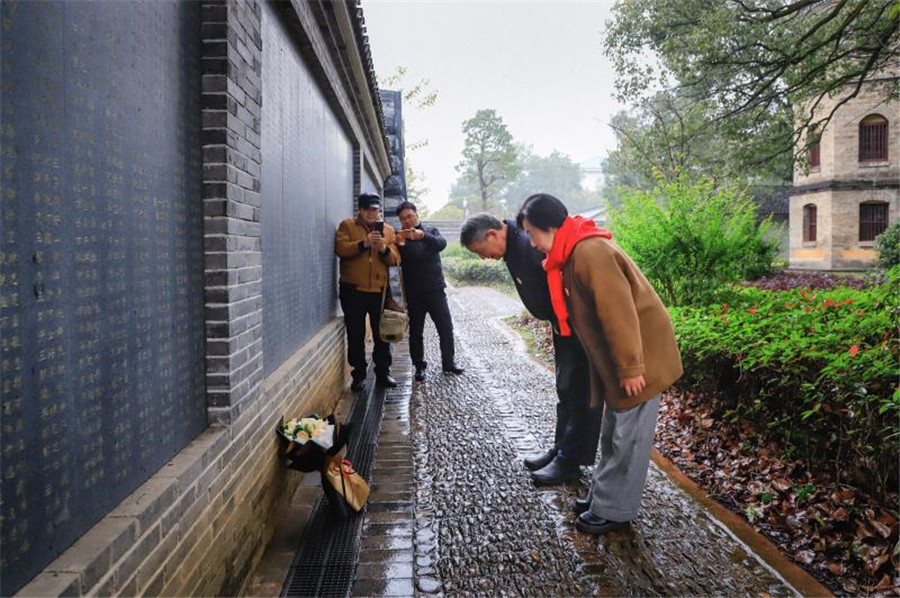 高新陵夫妇先来到中山堂,看到父亲工作、生活过的地方激动不已,跪在刻有父亲名字的名录墙前泣不成声。她说:今天参观黄埔军校二分校遗址感慨良多。谢谢武冈黄埔研究会为黄埔后裔提供方便,感谢武冈市委市政府将黄埔军校二分校维护的这样好,将校友名录篆刻上墙,让黄埔将士英灵能重回母校,是功高盖世的善举。也让黄埔后人有了新的精神家园,人文意义非凡!
