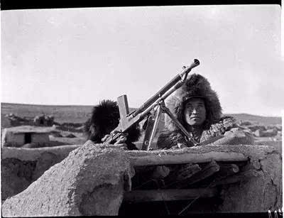 绥远前线,阵地上的中国军队机枪手。方大曾摄于1936年12月