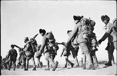 紧急奔赴绥远前线的中国士兵。方大曾摄于1936年12月