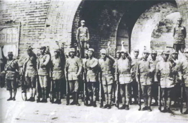 第29军士兵出击敌人前,在北平城高呼口号宣誓
