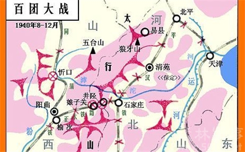 仔细观察我们可以发现八路军的进攻方向主要是向着铁路进行的。这条铁路连接了石家庄、北平、天津、阳曲等许多的城市。八路军攻破正太铁路的目的从这副战略地图上明确的体现出来。那么问题来了,为什么八路军要发动百团大战来毁坏正太铁路呢?原来,自1939年开始日本军队就开始以交通路线为基础,特别频繁的入侵我国晋察冀地区的抗日根据地,他们试图通过所谓的“囚笼政策”,来切断各个战略地区之间的密切联系,以达到自己占领中华、统领亚洲以及统治整个世界的“梦想”!因此,八路军来一场交通战,以打破小日本的阴谋!
