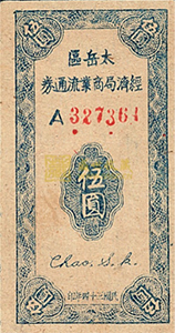 晋冀鲁豫边区下属的太行行署发行的太岳经济局商业流通券