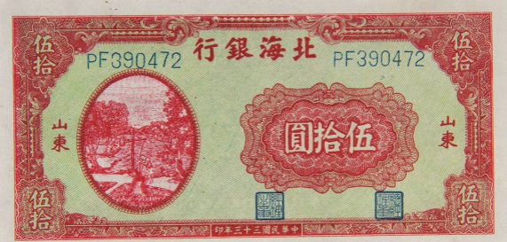 山东抗日根据地有鲁中、鲁南、滨海、渤海、胶东五个战略区,2.5万余个村庄,800多万人口。1938年8月,山东人民抗日救国军第三军与掖县胶东抗日游击第三支队合编。之后,蓬、黄、掖三县抗日根据地连成一片,在三县抗日民主政府的基础上又成立了北海区行政督察专员公署。胶东特委领导成立掖县银行,采用公私合营的形式筹集资金,考虑到隶属关系,掖县银行称为“北海银行”。