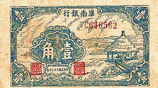 淮南银行1942年成立,行址设于江苏淮安盱眙县,发行淮南币通行于淮南地区各县。1945年8月与淮北地方银号、江淮银行、盐阜银行、淮海银行4个地方银行合并组成华中银行