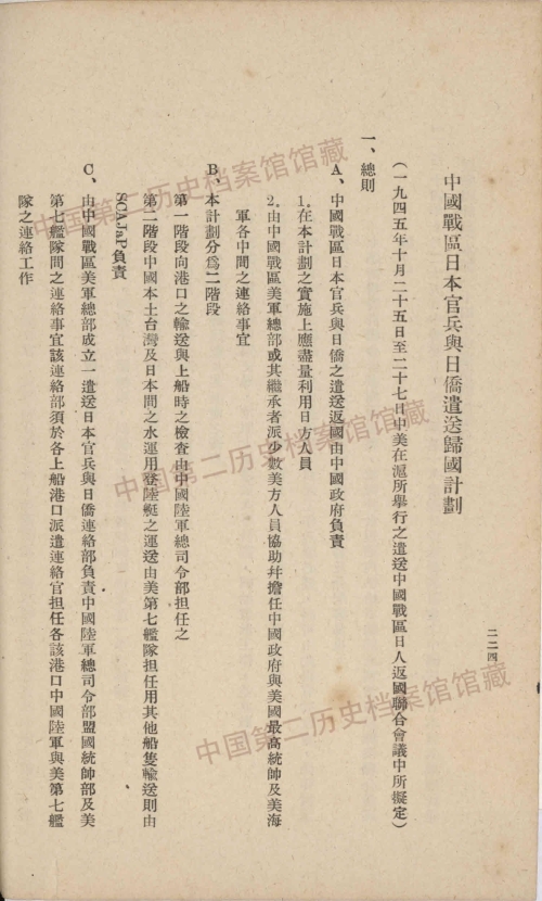 1.中国战区日本官兵与日侨遣送归国计划(1945年10月)
