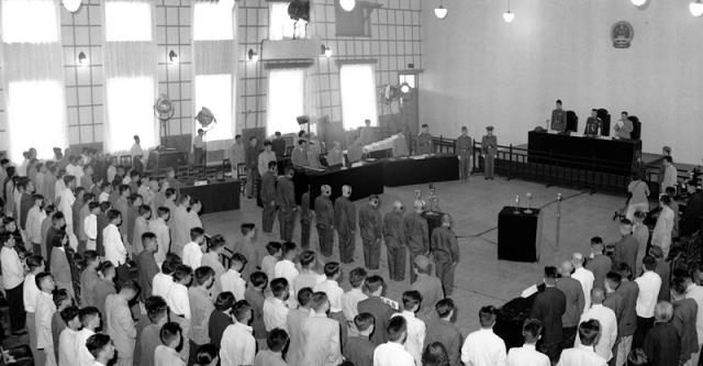 这里作为中华人民共和国最高人民法院特别军事法庭,对36名日本战犯进行审判。庄严的国徽之下,审判长朗声宣读:中华人民共和国最高人民法院特别军事法庭今天开庭。