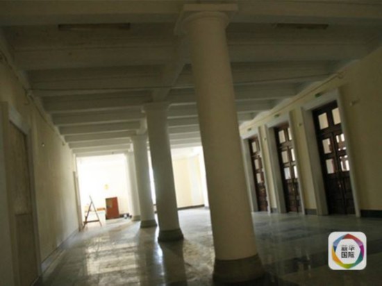 记者先问值班人员,被拒绝说不让参观。后找到中国驻哈巴罗夫斯克总领馆,总领馆及时帮我们联系了哈巴罗夫斯克边疆区政府和东部军区,然而得到的回复都是,那个地方是东部军区军官俱乐部,不对外开放。最后记者索性直接找到主管装修的小工头,没想到竟得以从装修后门进入现场。