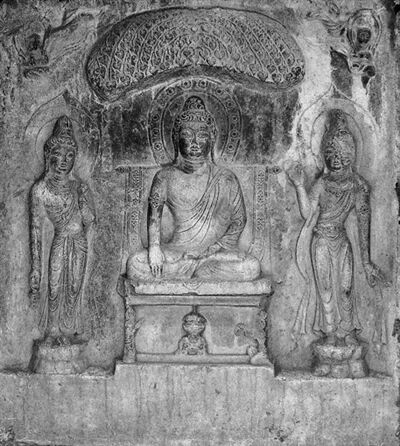 ▲8世纪宝庆寺如来三尊佛龛,现藏日本东京国立博物馆东洋馆。