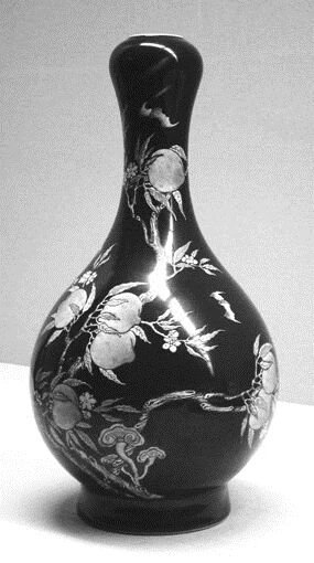 ▲18世纪景德镇窑蓝釉粉彩桃树纹瓶,现藏日本东京国立博物馆东洋馆。
