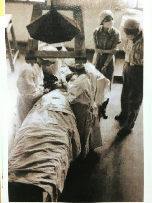 救护总队的医护人员在简陋的条件下为伤员做手术