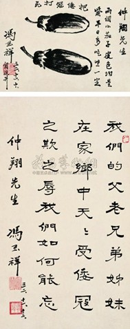 冯玉祥1943年作 抗日书画 (两件) 立轴 水墨纸本