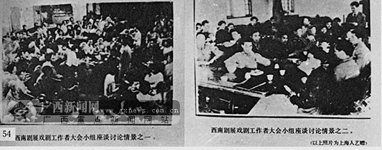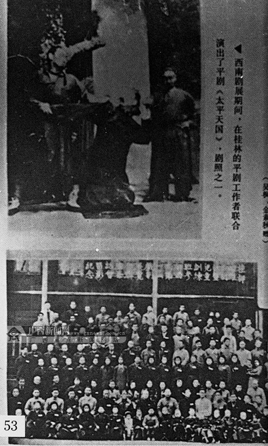 西南剧展期间,在桂平的平剧工作者联合演出的平剧《太平天国》剧照之一。桂柳四维平剧社暨儿童训练班参加西南剧展茶话会留影纪念。