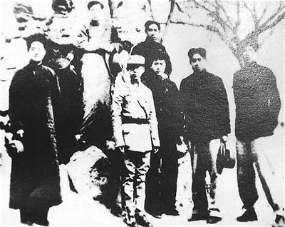 1937年,张寒晖(穿军装者)与西安民众剧社朋友合影。