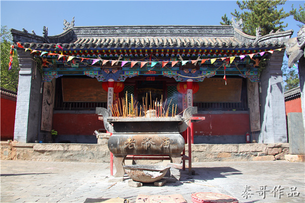 老爷庙面积不大,占地面积约一亩地。它的正殿在第二层,从下面拾级而上,就到了正殿,里面供奉的是关公,殿前香火正旺。但是从这里是看不到乔沟的。