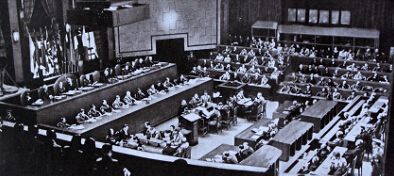 1946年4月29日,远东国际军事法庭对东条英机等28名甲级战犯正式起诉。法庭设在原日本陆军省,庭长室设在东条英机原来的办公室。5月3日,法庭在军事会议厅召开第一次公开会议,开始审理东条英机等战犯的罪行。审理采用美国、法国法律,分立证和辩证两个阶段。3日至4日,首席检察官基南宣读长达42页起诉书。起诉书历数了自1928年1月1日至1945年9月2日,被告的破坏和平罪、战争犯罪和违反人道罪等,即“以领导者、组织者、教唆者或同谋者的资格,参与共同计划或阴谋,欲为日本取得对东亚、太平洋、印度洋以及其接壤各国或邻近岛屿之军事、政治、经济的控制地位,为达到此目的,使日本单独或与其他国家合作,对任何一个或一个以上之反对此项目的国家从事侵略战争”。起诉书列举出55项罪状。被告中罪状中最少的也有25项,最多的达54项。