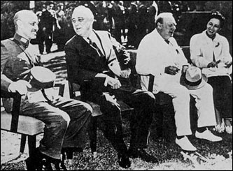 1943年,第二次世界大战进入战略转折期,欧洲战场和太平洋战场形势都发生了重大变化。为了更好地协同作战,尽早结束战争,同盟国首脑感到有必要就军事合作及战后安排等问题展开磋商。为此,1943年11月22日至26日,中、美、英三国首脑蒋介石、罗斯福和丘吉尔,在开罗近郊举行了盟国首脑会议。会议讨论了与亚洲有关的重大军事、政治问题,包括联合对日作战计划和战后如何处置日本等,会后发表了著名的《开罗宣言》。这是第二次世界大战期间,同盟国多次首脑会议中唯一有中国参加的一次。