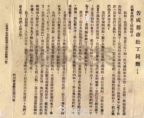 这份布告张贴于成都的大街小巷并在整个四川省境内广为流传。据历史档案记载,除了分派到各分局广为张贴布告,警察局还要求各保甲分头向住户壮丁分发、讲演传单。这是一份让人过目不忘极为煽动的征兵布告,布告完全没用正规公文格式,而是用家常大白话以娓娓道来,将心比心的方式向所有的同胞喊话。布告把国事变成与每个人切身利益相关的家事,动员效果非常显著。