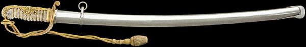 日军从1886年开始为军官配发军刀,这年是明治十九年,所以该军刀被命名为19式军刀。这种西洋式军刀刀身较窄,单手握持,有P字型护手,实战效果并不理想。在1933年的长城抗战中,19式军刀在和中国军队的大刀的白刃格斗中明显吃亏,于是日军在1934年就废弃了华而不实的西洋式军刀,恢复传统日本样式的军刀,以应对白刃战的需要。