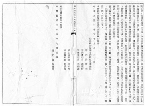1945年11月6日,南京国民政府成立了战争罪犯处理委员会。12月中旬以后,分别在北平、沈阳、南京、广州、济南、汉口、太原、上海、徐州、台北10个城市设立了审判战犯军事法庭。其中,南京军事法庭直属国民政府国防部,其他军事法庭隶属于各战区、绥靖区或行辕。