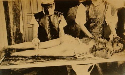 然而更加残忍的是难以想象的活体解剖,根据原731部队成员森冈宽介回忆:“由军医来进行解剖,我们站在一旁敢看,解剖时是从脖子一直把肚子剖开,内脏全部露了出来!”