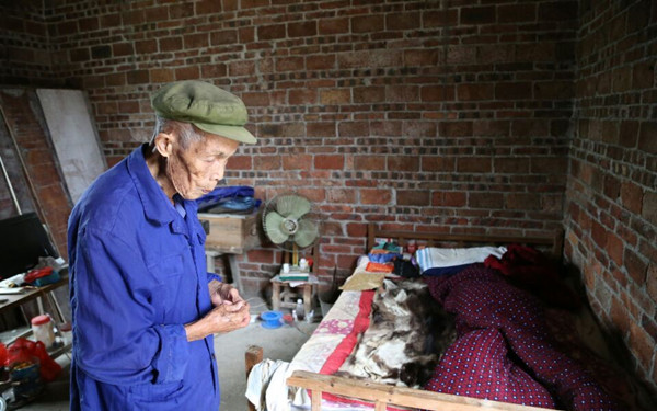 老人现状:熊兆宣老人一直在象州县象州镇下田村务农生活至今。其当兵前已结婚,育有四女三男,二儿子已过世,老人随小儿子一家生活,小儿全家务农,有一男一女,其中男孩(老人的孙子)智力障碍残疾无劳动能力。目前熊兆宣老人简单的生活能够自理,平时自己动手打理一些家务比如种菜、洗衣、热菜等等。。