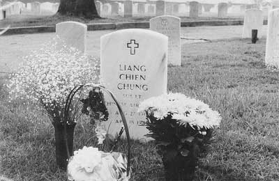 >>>记者查档:《民主报》上有关梁建中的消息是这样的:“昨日下午,中国飞行员梁建中中尉的葬礼在DaleMa b r y 墓地举行。周六下午,梁中尉驾驶的战斗机在距Quincy 高速公路两英里的地方坠毁,梁中尉在坠机事件中丧生。这位23岁的飞行员将被运送到FortBe n n i n g 军人公墓埋葬。”他被埋在该公墓E区76号,“那块墓地位于公墓最好的地区”。