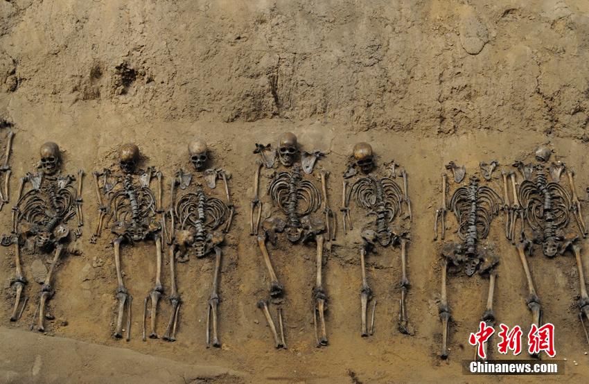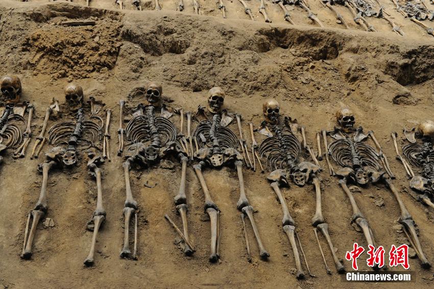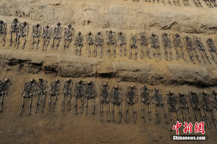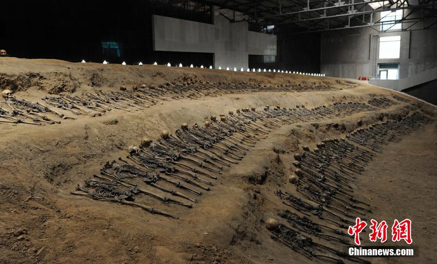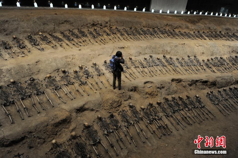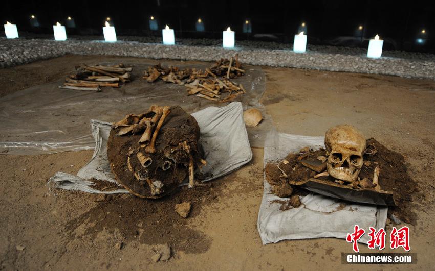 在吉林辽源矿工墓陈列馆最大的一间尸骨展馆内,展示着3排共179具死难矿工的遗骨。据了解,这些遗骨是东北沦陷时期遭到侵华日军迫害致死的矿工,他们肩挨着肩,脚靠着脚,尸骨间只有拳头大的距离,经过专家鉴定,其中有三十多具童工的尸骨。在吉林省档案馆近日公布的日本侵华档案中,也有从日本关东宪兵队档案中发掘整理出来的“日军奴役中国劳工”史料,反映出当年在日军奴役下,中国劳工极端恶劣、严酷而又恐怖的生存境遇。张瑶摄
