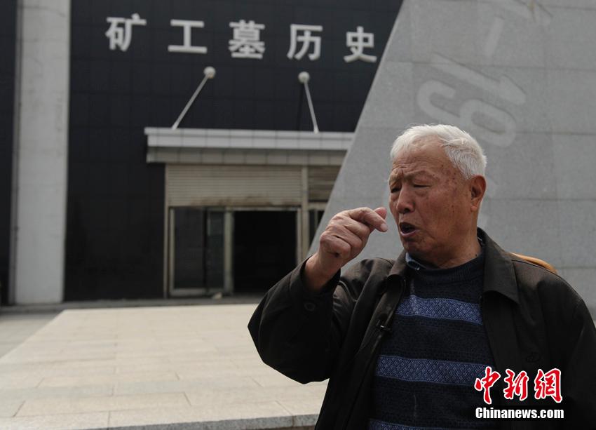 幸存矿工刘其祥介绍侵华日军奴役矿工暴行。张瑶