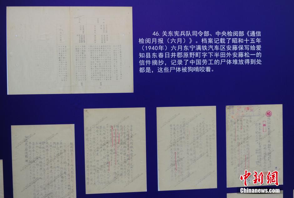 反映日本奴役中国劳工档案影印件。中新社发 张瑶 摄