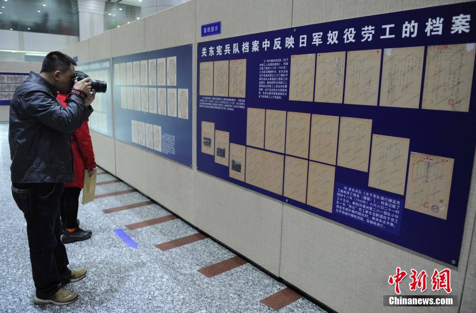 反映日本奴役中国劳工档案影印件。中新社发张瑶