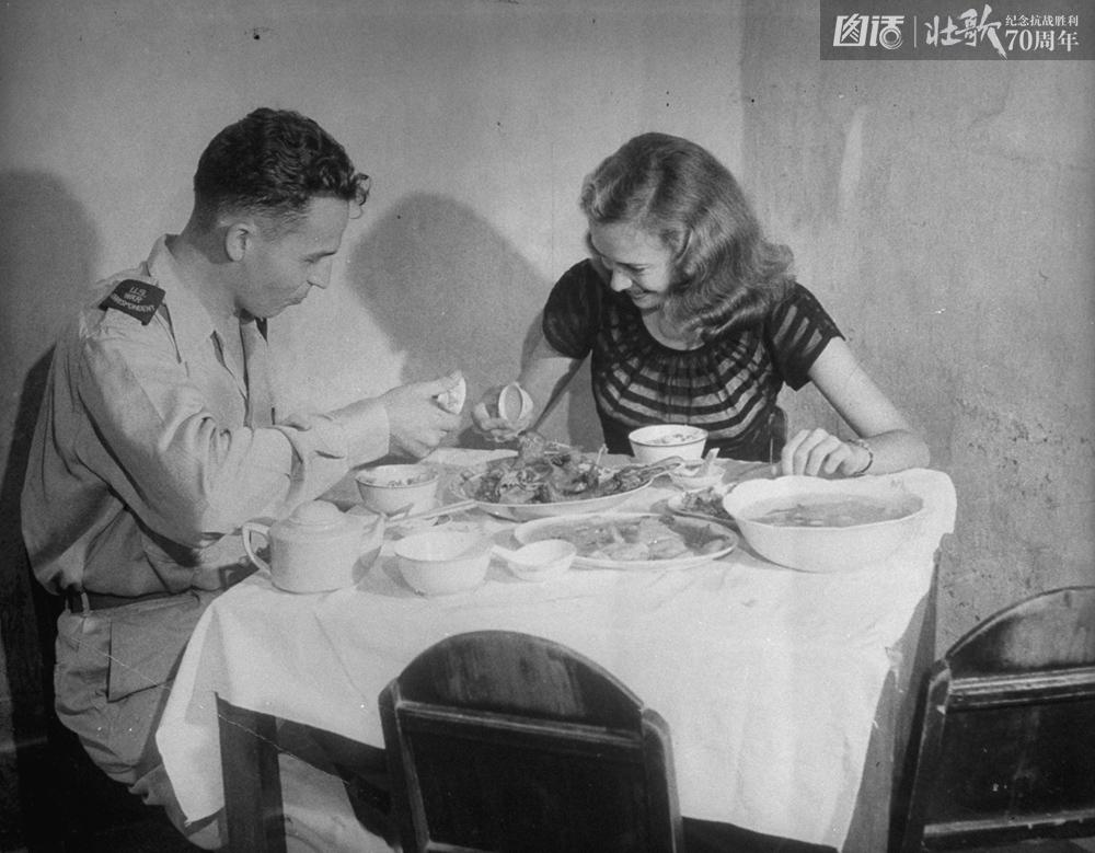 抗战胜利一个月后,在华美籍随军记者帕尔默·霍伊特将自己的美国女友接到重庆度假,度过了战后的一段美好时光。图为1945年10月,重庆,帕尔默·霍伊特与女友干杯庆祝。