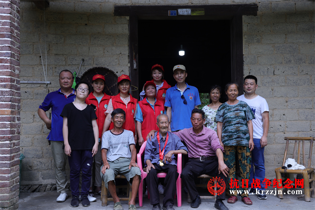 秋天班关爱抗战老兵志愿者与宁乡志愿者与止戈工作人员以及抗战老兵家人合影留念