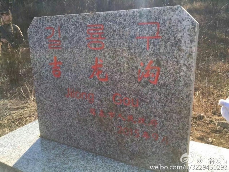 11月4日,中俄边境地名碑树立仪式在珲春市春化镇中俄边境线举行,5处全新的实体界碑、地名碑正式落成。图片来自微博