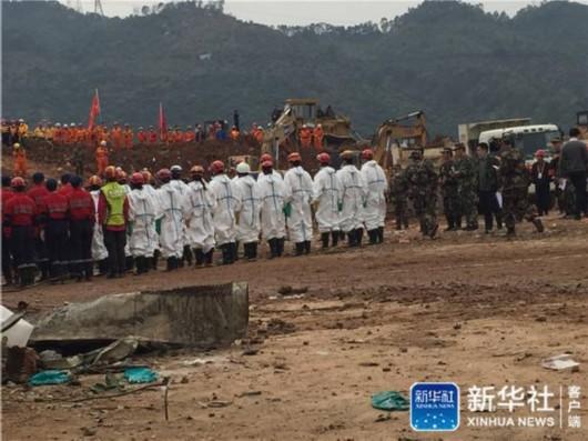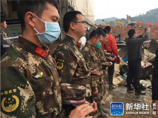 新华社深圳12月26日新媒体专电 深圳市光明新区“12·20”滑坡事故发生的第七天——26日中午11时40分,滑坡事故的现场,广东省和深圳市党政领导、解放军、武警等抢险人员,暂时停下手中的工作,集体为这场事故中的遇难者默哀。