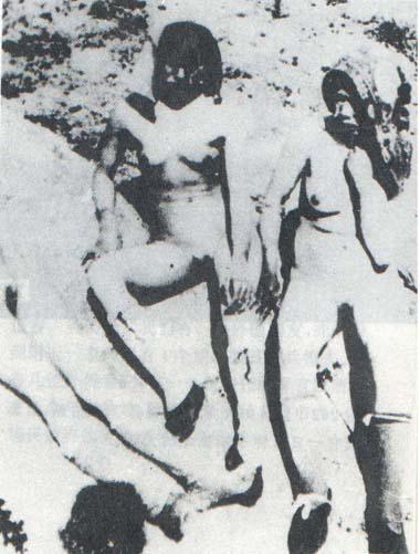 他们用锥子和针,向我们同志身上直刺,直刺成了血人。被难同志有时叫骂怒视,他们会连眼睛也刺上两锥子,最后是用刺刀把喉咙穿破,血象泉水一般地涌出来,'皇军'便在旁边拍手叫好。