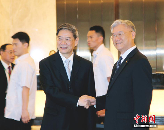 国务院台办主任张志军与台湾方面陆委会主委夏立言金门会面资料图