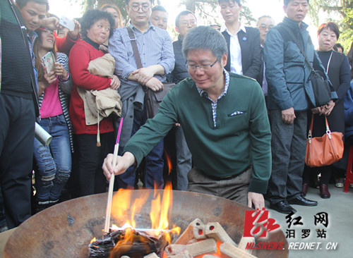 为了告慰英灵,祭祀会上,知名作家熊育群双膝跪于火炉前,将自己的心血之作《己卯年雨雪》焚化,捎给当年的烈士和遇难者。会后,小林宽澄、熊育群一行参观了长沙会战“营田战场”。