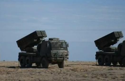 中央电视台画面中出现的远程精确制导火箭炮同时精确命中多个目标画面