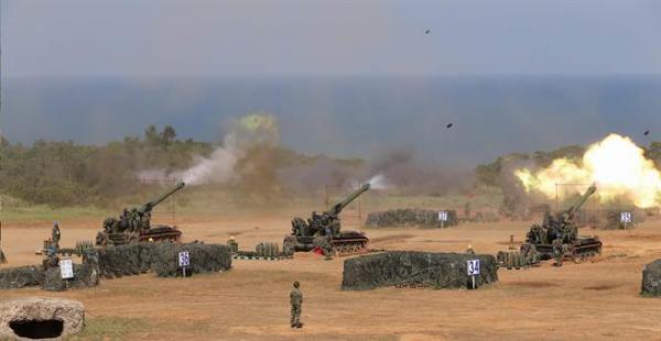 台军“汉光”演习中设立在滩头附近的炮兵阵地