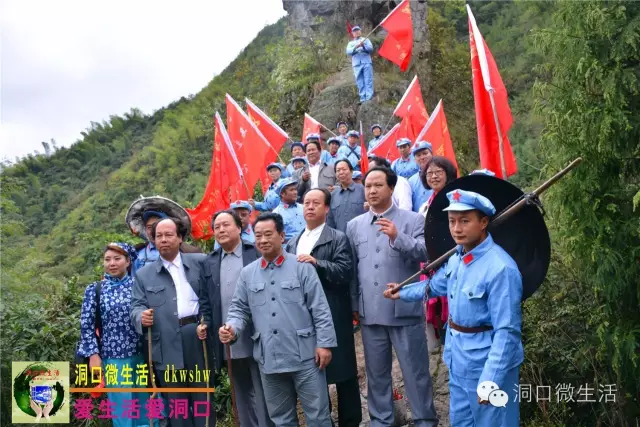 为纪念红军长征胜利80周年,弘扬红军长征精神,激发人民的爱党爱国爱军热情,今日毛泽东、朱德等特型演员一行在岩山镇政府及村干部的带领下走进湖南平溪江石人景区,在洞口石人村重走红军长征路,洞口县党员领导干部、县直机关干部职工、企业老总、青年志愿者、学生和当地群众纷纷参加,此次活动得到罗溪森林公园管委会、县旅游局、湖南平溪江生态旅游开发有限公司,石人村月塘村的大力支持,洞口微生活全程参与及拍摄记录此次活动!