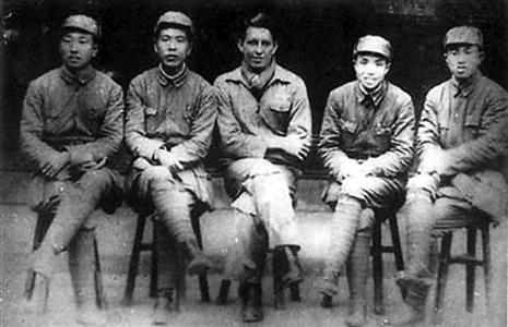 美国飞行员托勒特(中)与新四军浙东游击纵队领导人合影