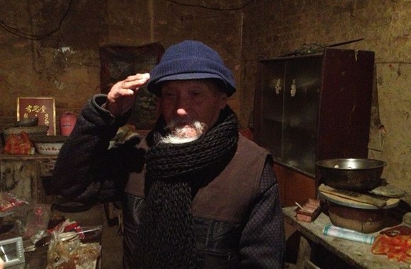老人对于我们的到来,脸上更多的表情是木讷甚至有隐隐的害怕。我们的提问一句回答一句,不敢有过多的语言。有些日期地点记忆也有些模糊。郑州如今的气温在零下7度。老人脚上的鞋是一双破烂的棉拖鞋。后面露着脚后跟的棉拖鞋。志愿者专门看了,家里没有更厚的鞋子了。
