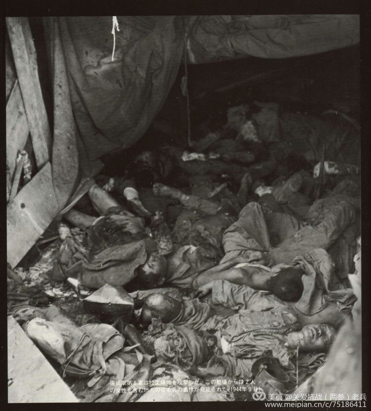 松山日军唯一逃跑的士官木下昌已(黄衬衣)回到松山玉碎阵地